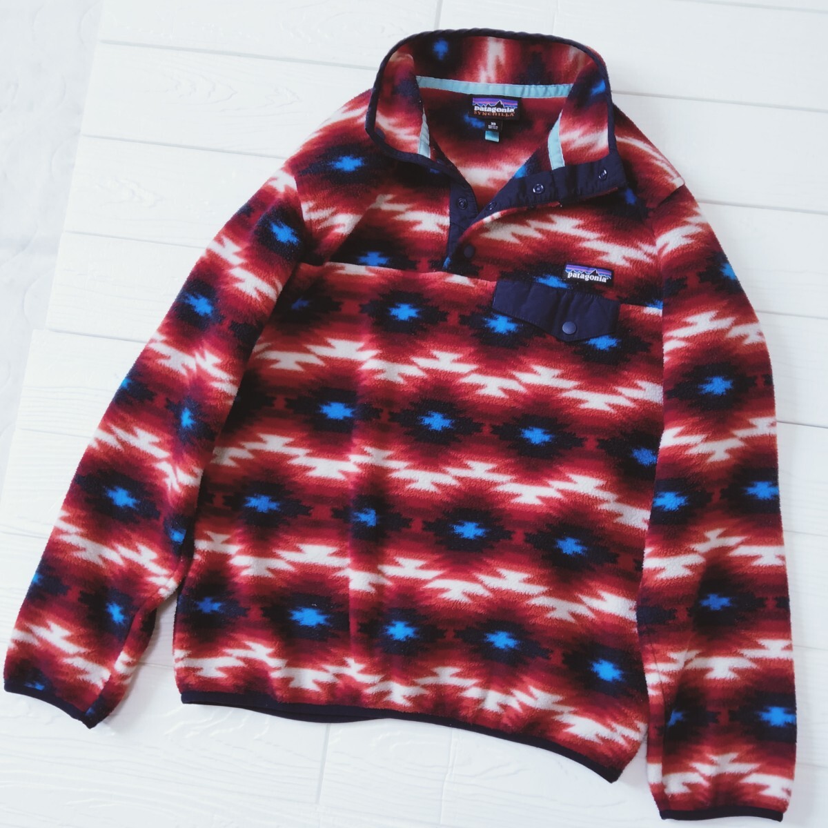 > patagonia パタゴニア SYNCHILLA シンチラ スナップT フリースジャケット マルチカラー ネイティブ柄 レディースXS 着用感S~M