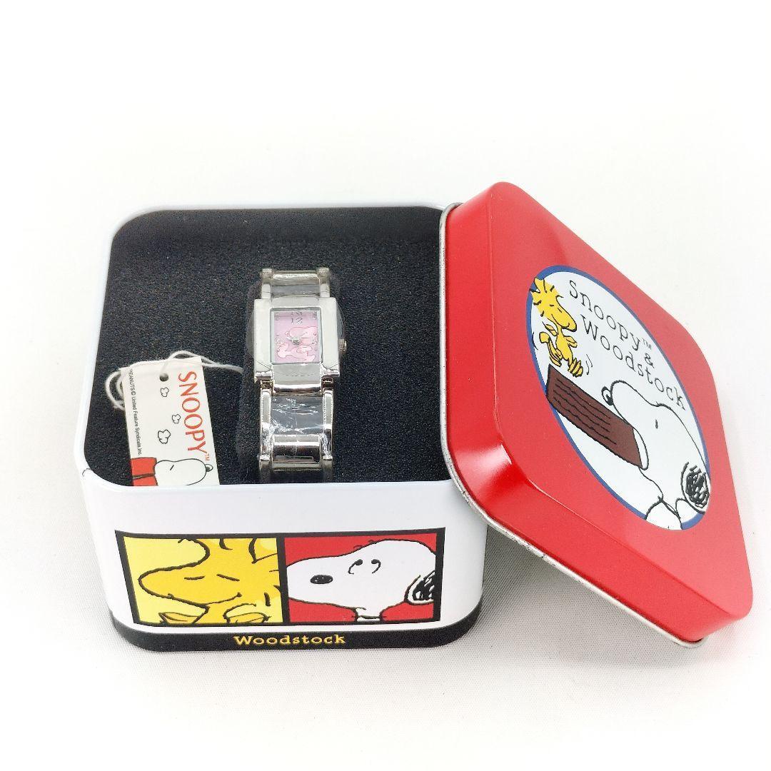 - 未使用 スヌーピー 缶入りシースルーウォッチ レディース 腕時計 ピンク