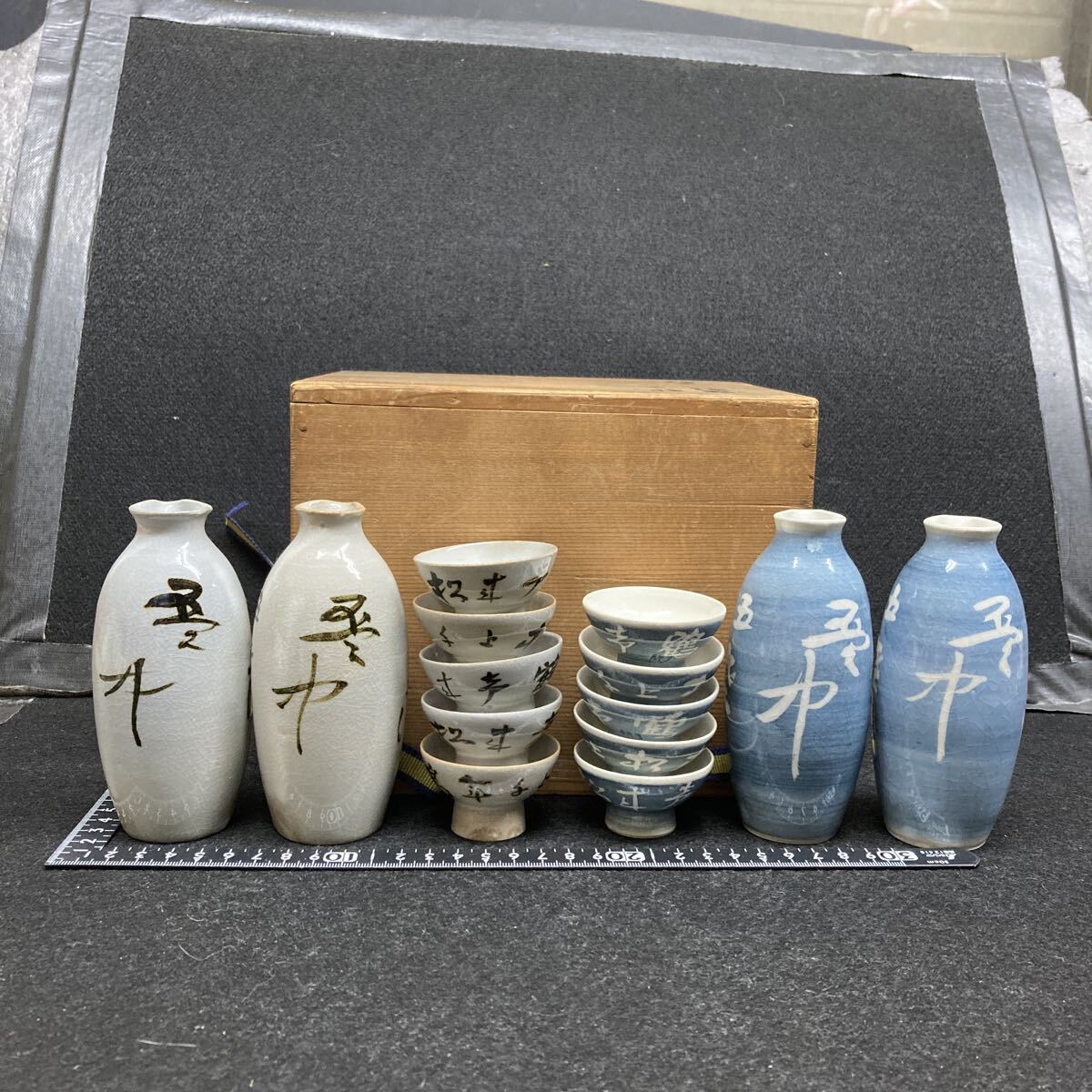 - 京焼 山田喆造(物故作家) 酒器揃詩文字 酒器 二種 共箱付き アンテーク 師(三代清風与平)