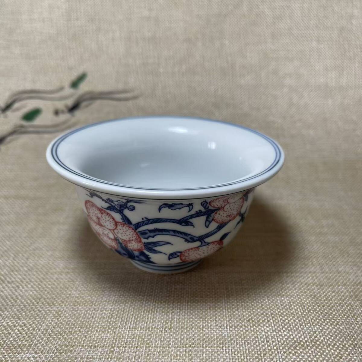 - 早期收集 陶瓷器 染付 茶碗 青花釉里 仙桃 福五桃九 茶杯 茶道具 主人杯