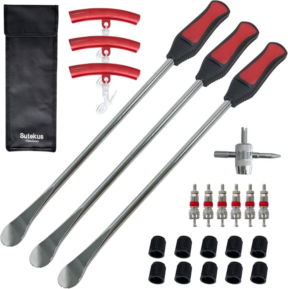 - 機能性重視 タイヤ交換用ツール セット 含むレバー3本、リムプロテクター、バルブ