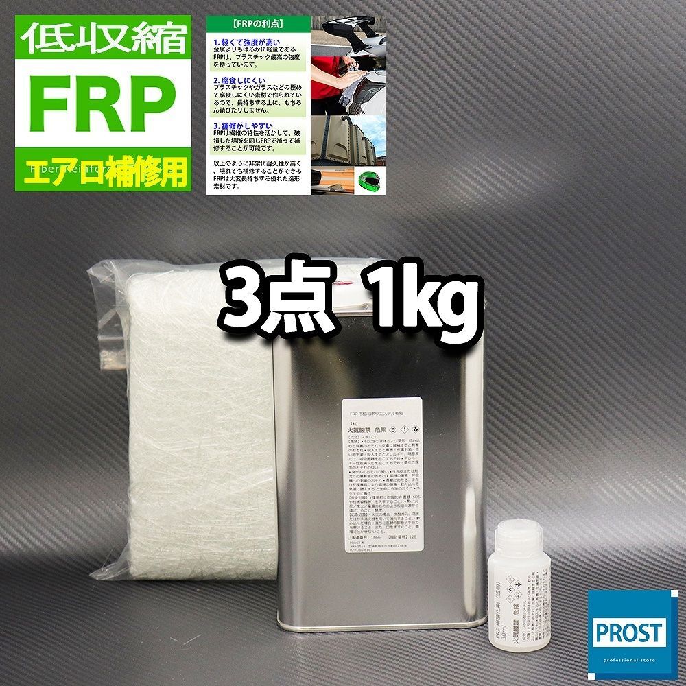 - 低収縮タイプ FRPエアロ補修3点キット 樹脂1kg 一般積層用 インパラフィン 硬化剤 ガラスマット付 セット Z25