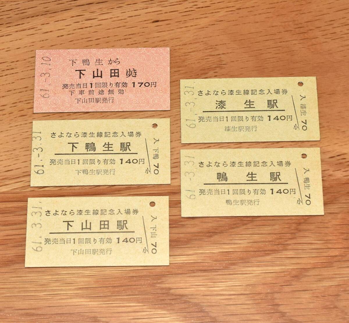 - さよなら漆生線 記念乗車券・入場券 5枚 廃止最終日の日付印入り 下鴨生 下山田 漆生 鴨生