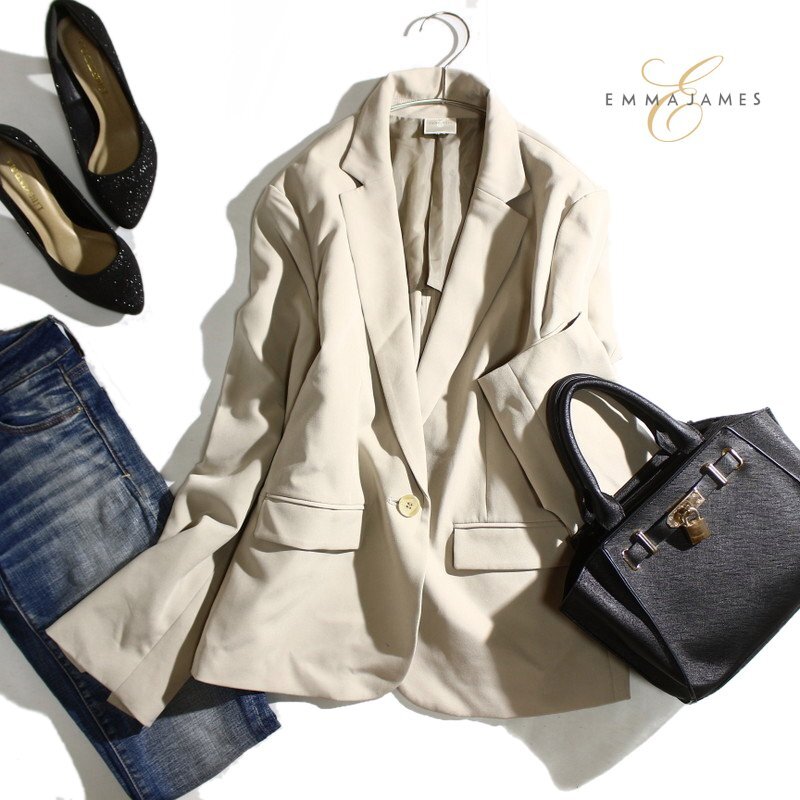 - エマジェイムス EMMAJAMES 通年 フォーマル 綺麗め スーツ テーラードジャケット 13AR ライトベージュ 13号 ジャージ― ジャケット 通勤