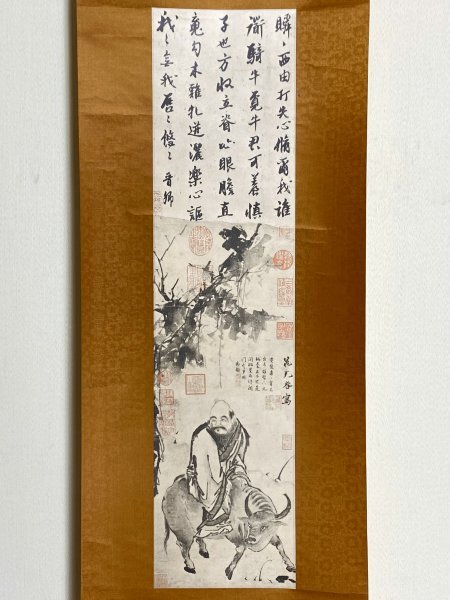 - 《魚亀》【印刷工芸】故宮博物院 宋 晁無咎(補之)「老子騎牛図」紙本 日本画 茶掛 茶道具 古美術 掛軸 掛け軸 中国 二玄社 古玩