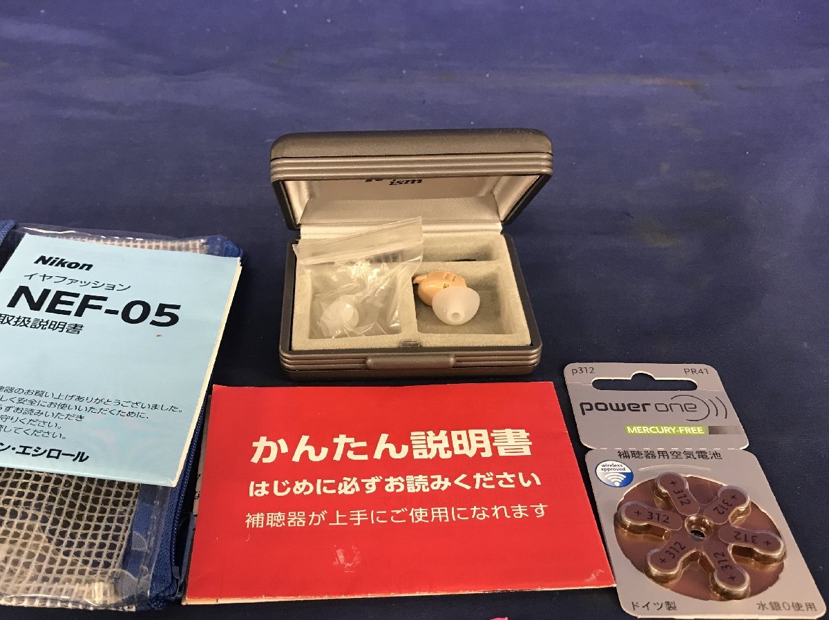> ★41―016★補聴器 Nikon イヤファッション NEF-05 片耳 通電確認済 ボタン電池 空気電池 PR41 説明書付き[60]