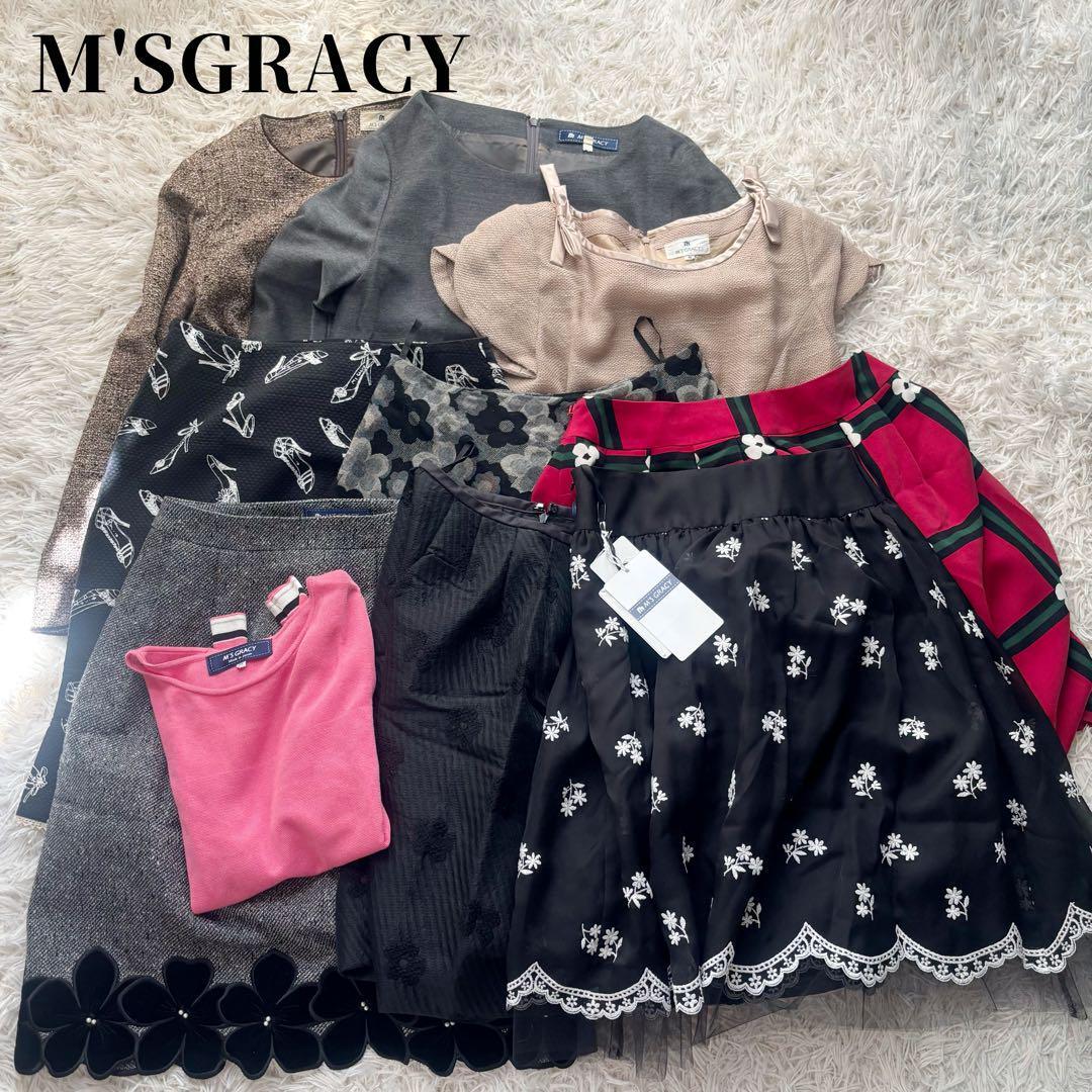 > M'SGRACY エムズグレイシー 新品タグあり まとめ 卸 ワンピース スカート トップス カットソー 38 40 カメリア ツイード 総柄