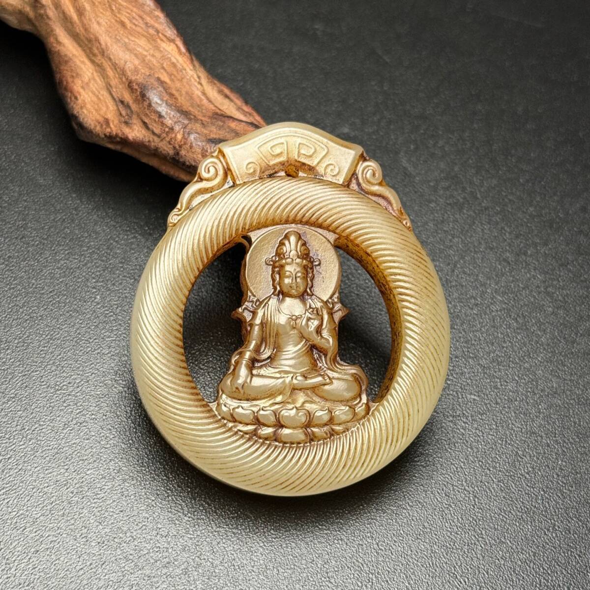 - 蔵友旧蔵出 和田玉製 細密彫 觀音菩薩紋 玉珮 盒付 玉質細膩 希少珍品 貴重品 置物 古賞物 中国古玩 中国古美術品