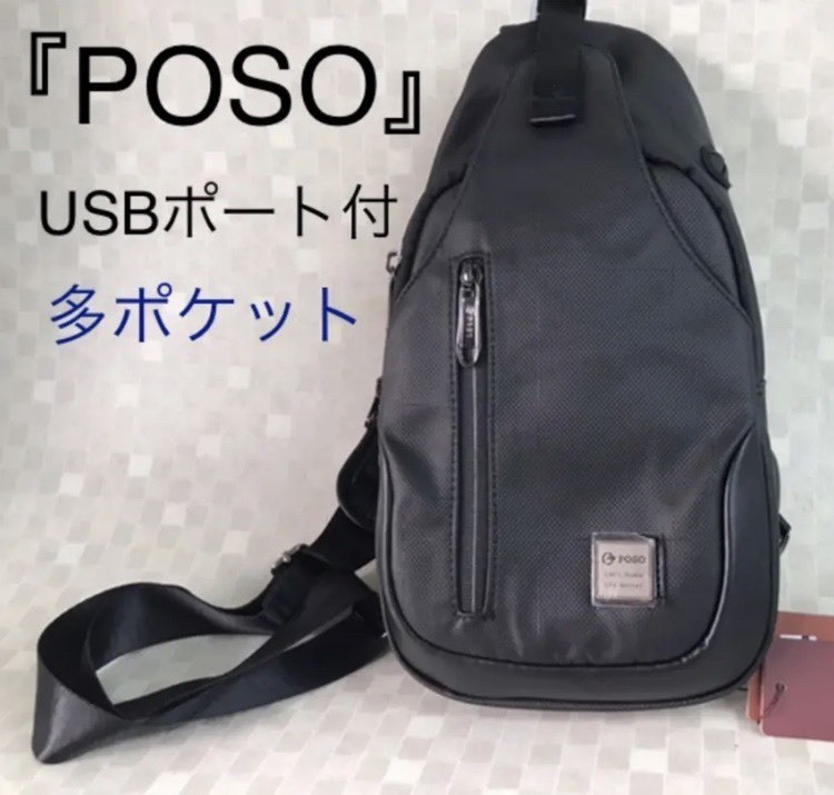 - 【業販ENYA】POSO ボディバッグ ショルダーバッグ USBインターフェース付き ブラック 黒 【送料無料】