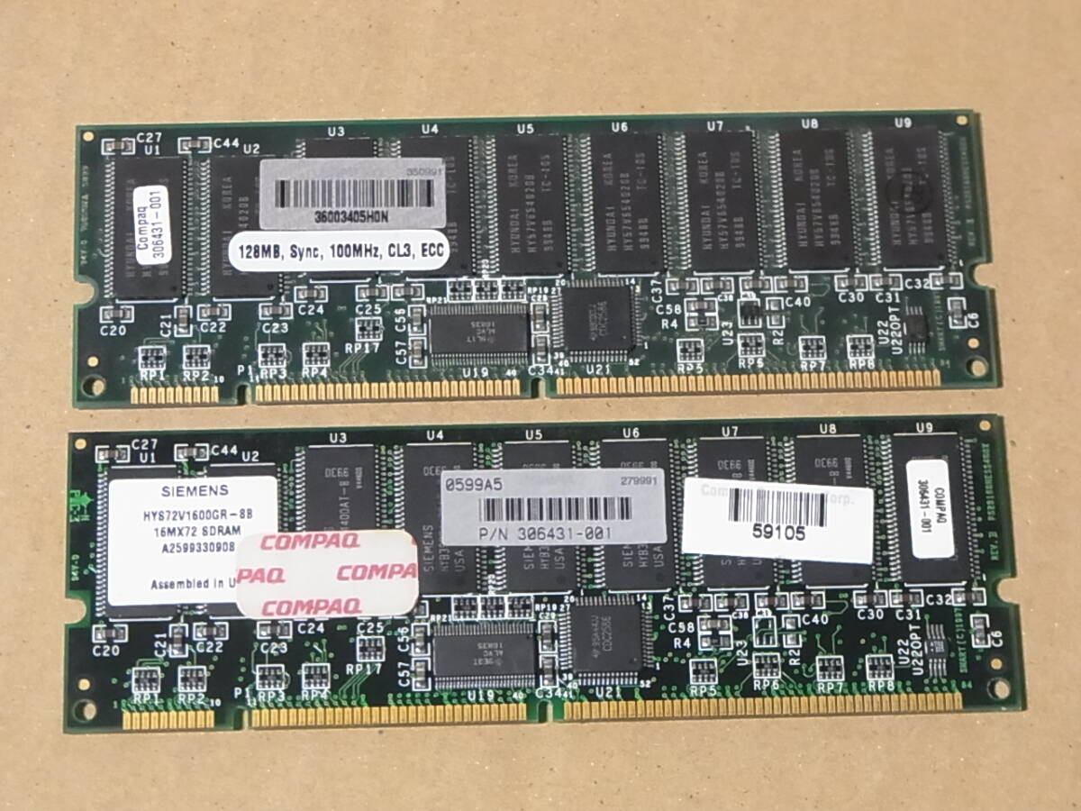 > ★HP・COMPAQ純正/PC100R CL3 ECC Registered 128MBx2枚セット 合計256MB (DDR968)