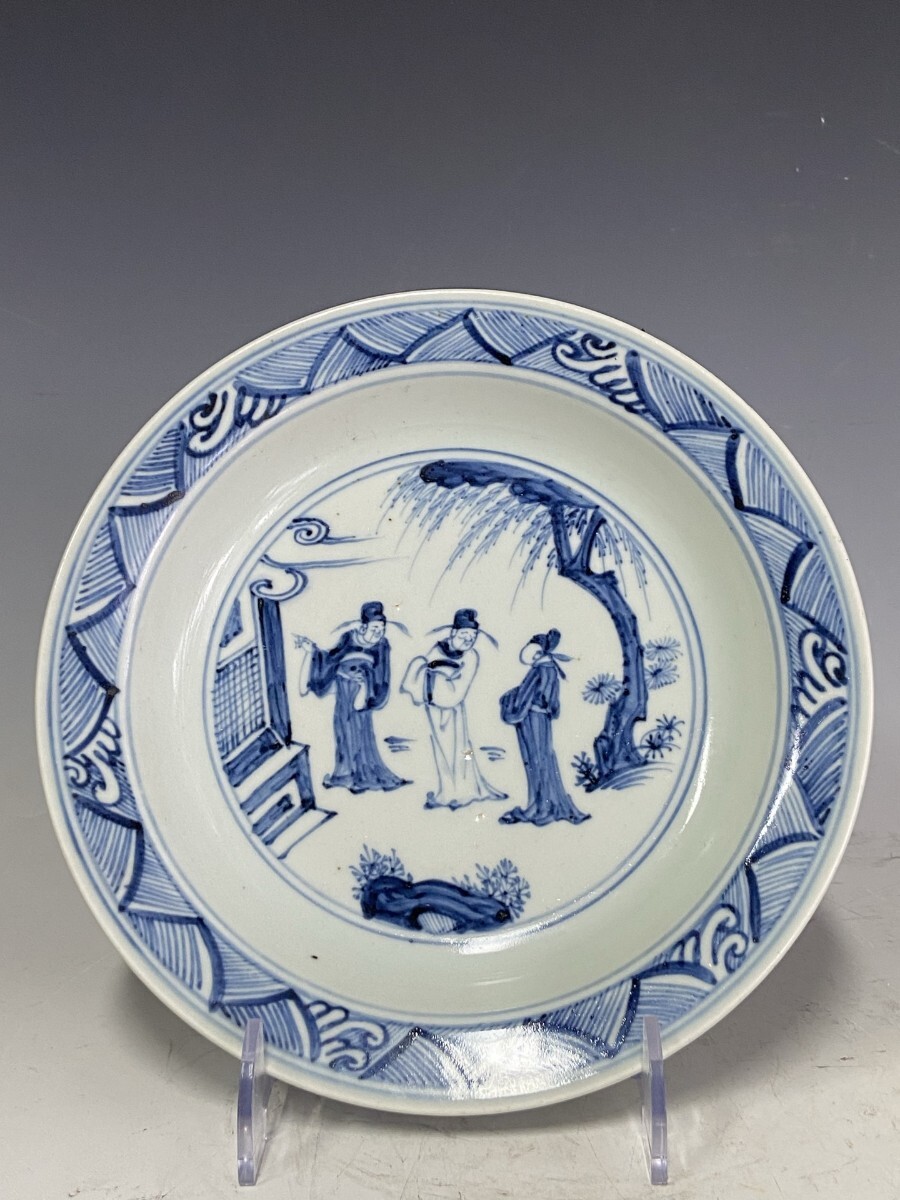 > 中国古美術 明時代 青花 明青花 皿 陶磁器 骨董 古玩 時代物 中国美術 古美術 骨董品 唐物 当時物 口径21cm gt18