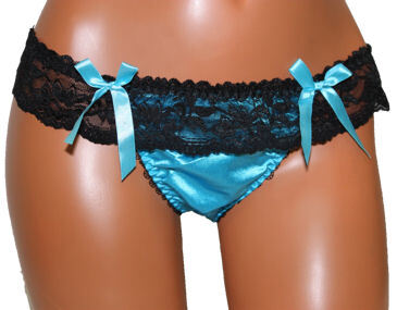 - NAサテン と リボン の 黒レース Tバックセクシー パンツ レディース ショーツ パンティ ランジェリー 下着 インナー レース P304 青