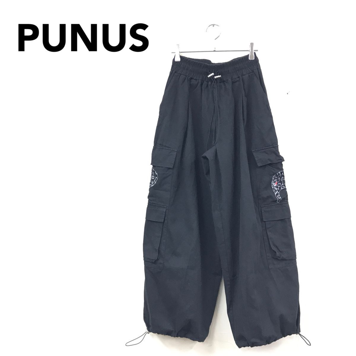 > 2K2303-R◆PUNUS プニュズ カーゴジョガーパンツ◆サイズ1 レディース 婦人 ボトム 刺繍デザイン アニマル ブラック 黒 ゆったり