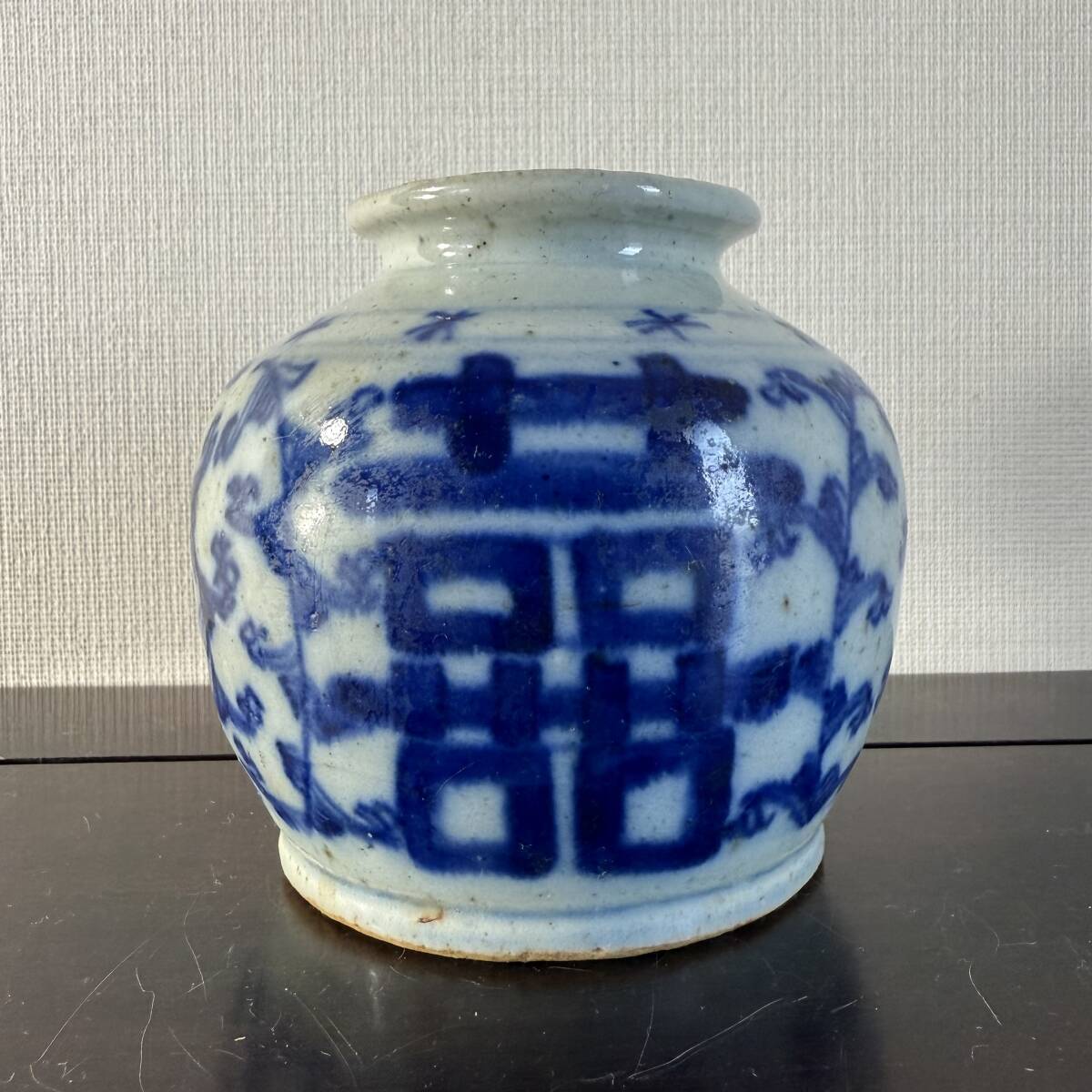 > 時代 中国美術 青花 唐草文壷 / 唐物 古染付 清朝 清代 壺 古玩 古美術 骨董 花瓶 花生 花入 花器 書道具 煎茶道具 古陶磁器