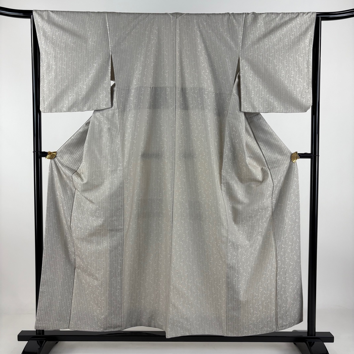 > お召 身丈156cm 裄丈64.5cm M 袷 縦縞 幾何学模様 灰色 正絹 逸品 【中古】