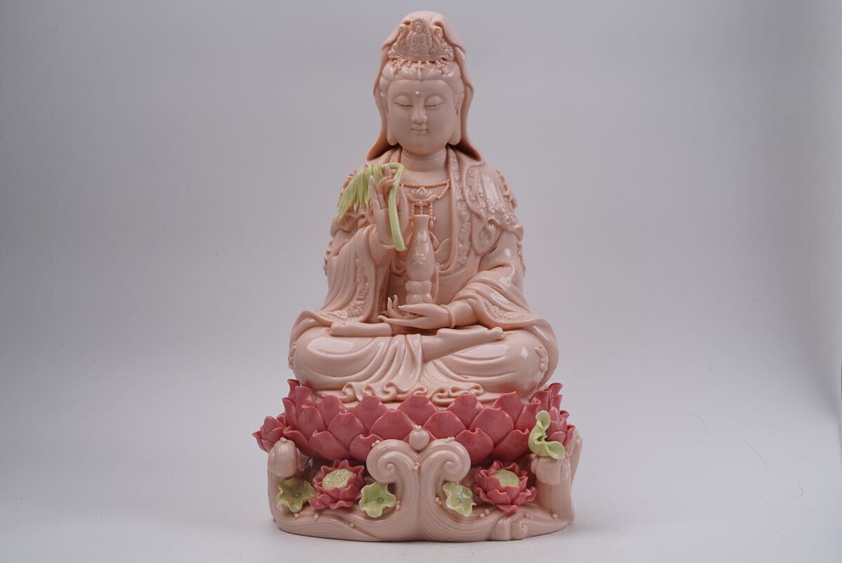 > 【竹華】中国古美術 磁器 仏像 中国古玩 古玩 骨董 時代物 当時物 唐物 骨董品 仏教美術 高さ30cm 観音菩薩 細工精彫