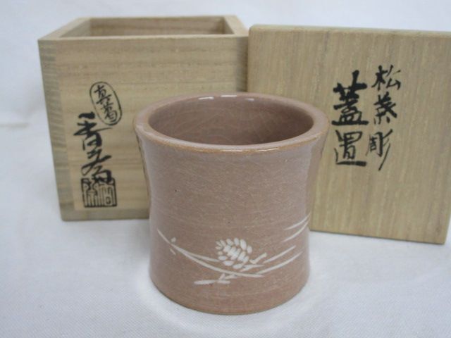 - 雉坂★【 真葛焼 松葉 蓋置 宮川香斎 共箱 】茶道具