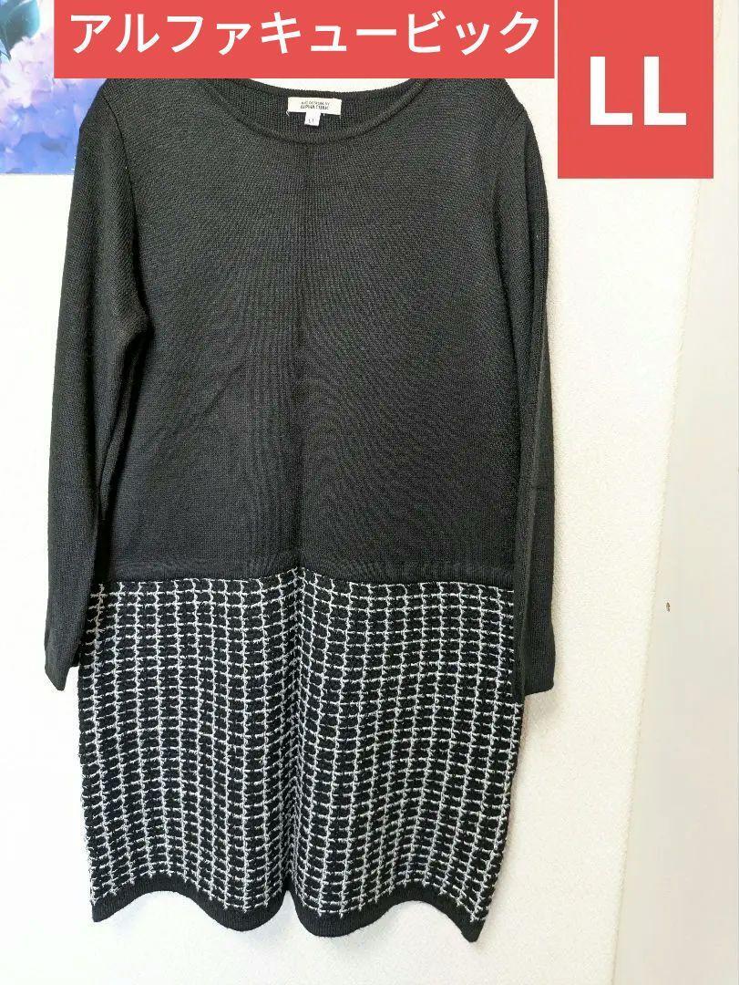 - 【美品】アルファキュービック★切り替え ニットワンピース★黒★LL