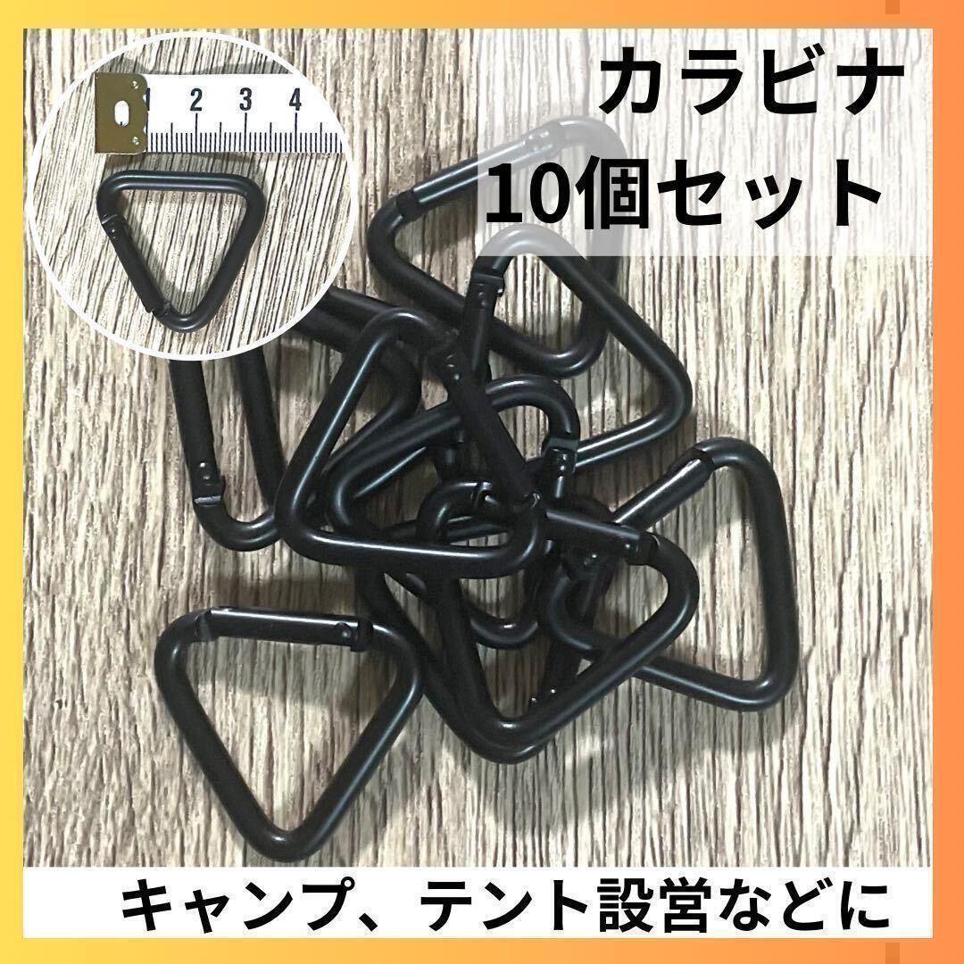- カラビナ 三角 三角カラビナ 10個 テント タープ 設営 ブラック キャンプ