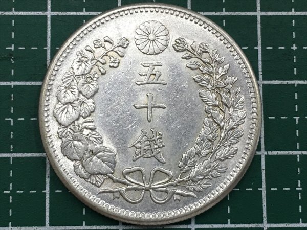 - 173【中古・収集品 近代貨幣 M36 竜50銭銀貨 量目約13.5g 真贋不明】