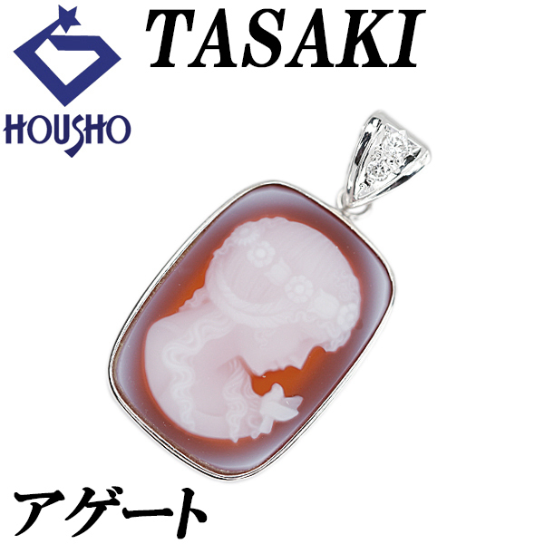 > タサキ 田崎真珠 アゲート ペンダントトップ ダイヤモンド K18WG TASAKI メノウ カメオ 女性 横顔 貴婦人 送料無料 中古 宝正 902679