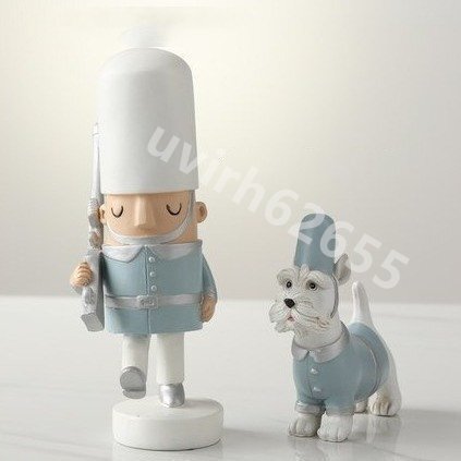 - 家飾り品 兵士+犬 モダン芸術オーナメント飾り インテリア樹脂置物 雑貨 プレゼント擺件 秀作 2色選択可能