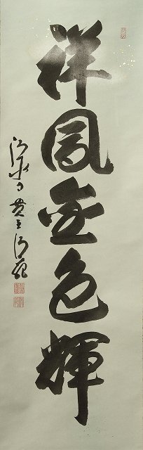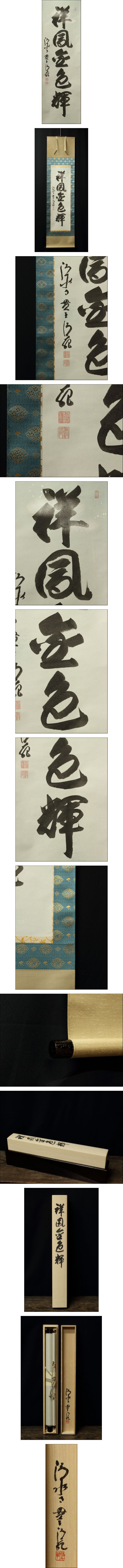 - ◆◇清水寺貫主 森清範 ( Kyoto ,1940‐ ) 一行書「祥鳳金色輝」現代の高僧 漢検 今年の一字揮毫 半切立 現代作家新作掛軸 共箱◇◆JY2121