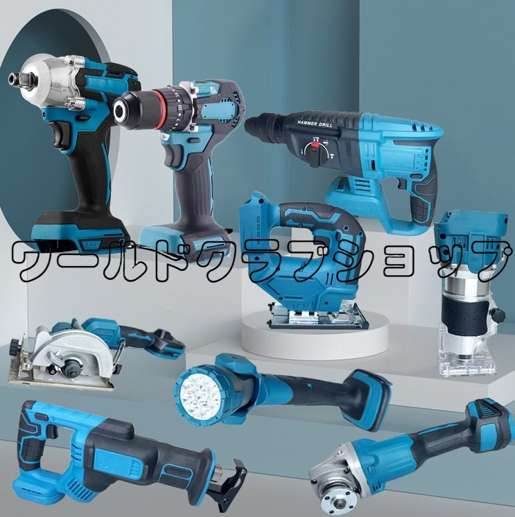 - 9点セット 電動ハンマー ディスクグラインダー 電動ドリル 電動インパクトレンチ 電動ノコギリ トリマー レシプロソー 作業灯 片手ノコギリ
