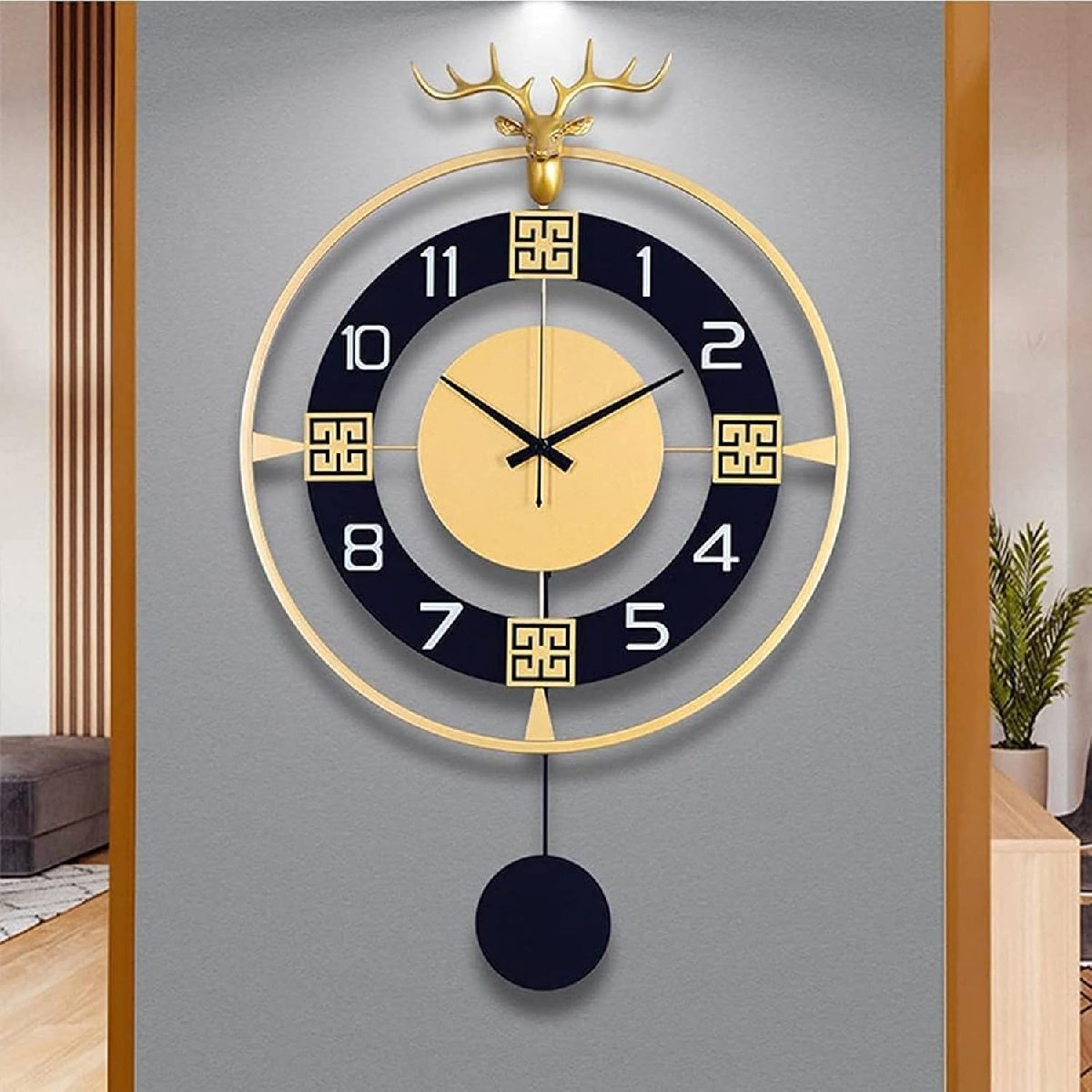 - 壁掛け時計 アート サイレント時計 鹿の頭 壁掛け時計 振り子付き 装飾壁掛け時計 ホーム リビングルーム オフィス 時計 装飾 ホームデコ