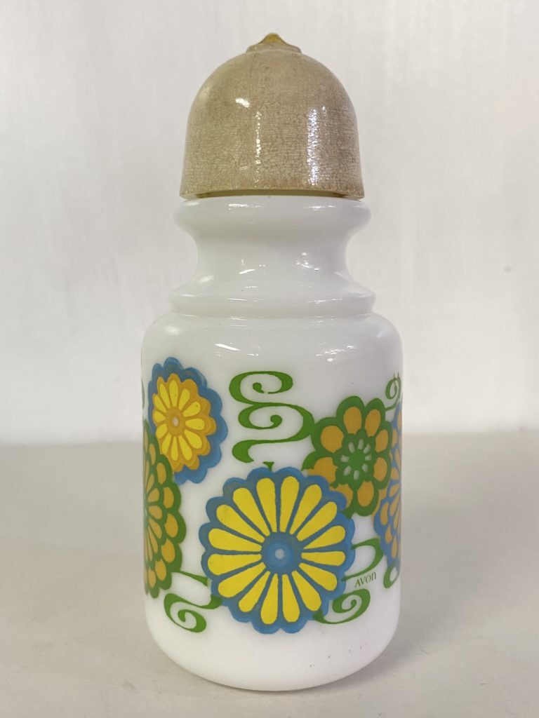 - 1970s Avon サイケデリック フラワー ソルト&ペッパー ミルクガラス ★ ヒッピー ビンテージ 70s 花柄 調味料入れ スパイスケース