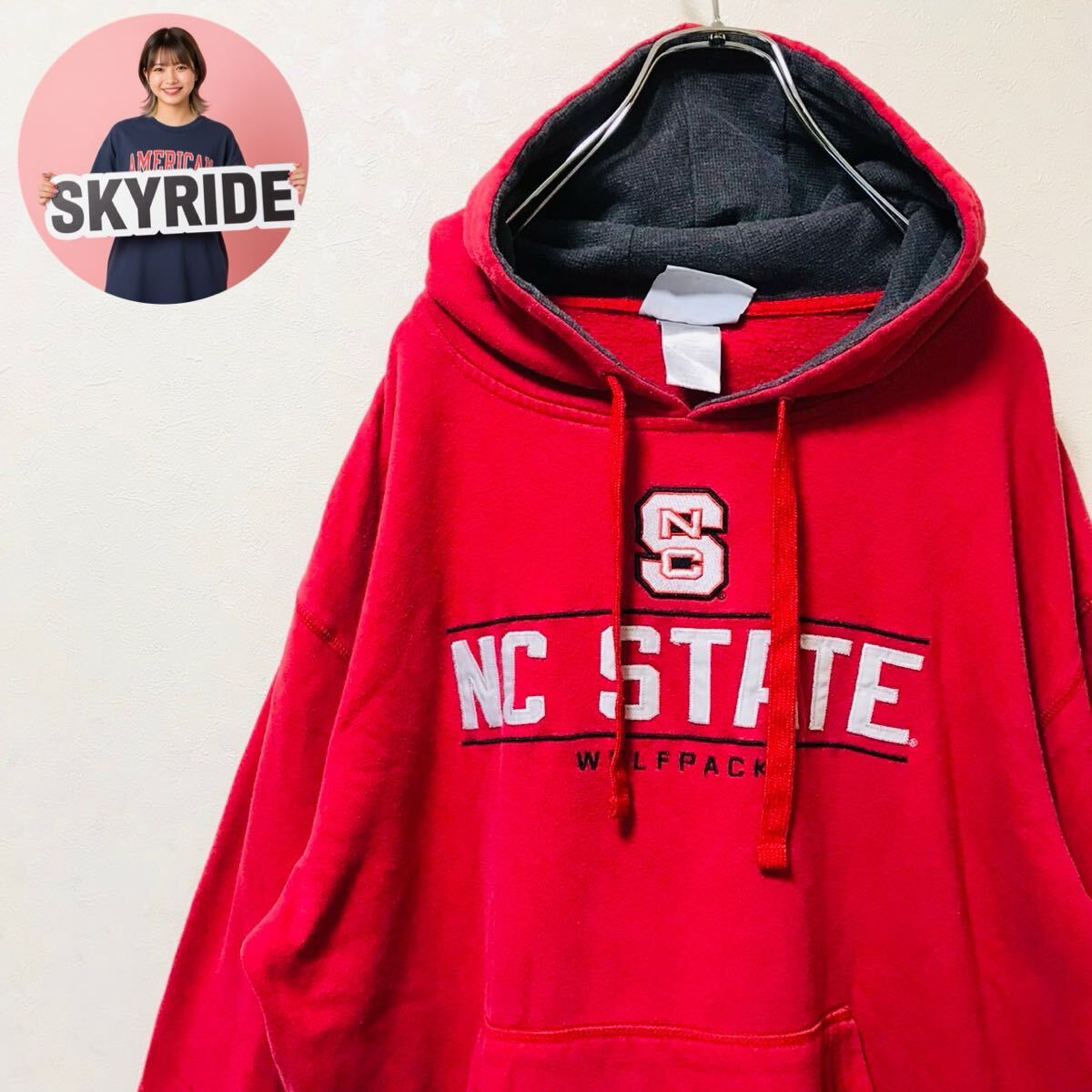 > 【人気】【定番】Champion チャンピオン 00s メンズ パーカー レッド XL 刺繍ロゴ ビッグシルエット カレッジロゴ 古着 #TT0318