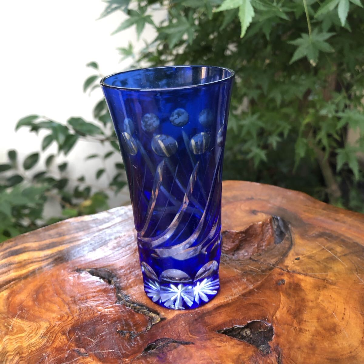 - 瑠璃紺 捻り葉 水玉 細工 グラス★古民家 ガラス 硝子 粋 レトロ 晩酌 酒器 風雅 風流 膳 侘び寂び ギヤマン 風情 ビードロ 工芸 ロハス