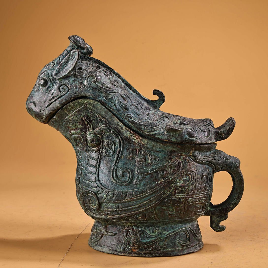 - ◆羽彰・古美術◆Y2578戦漢時代 青銅器 青銅獣面酒杯 細密細工★古置物★古賞物★古擺件★蒐集家放出★唐物