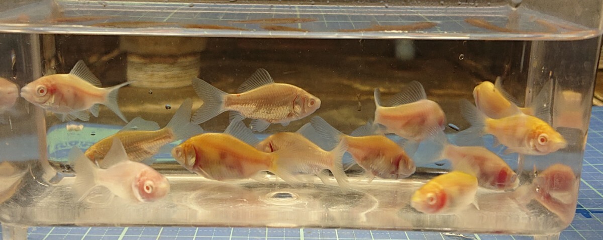 - 5匹アルビノフナ尾和金(透明鱗、ノーマル鱗MIX)目測約4㎝前後 金魚
