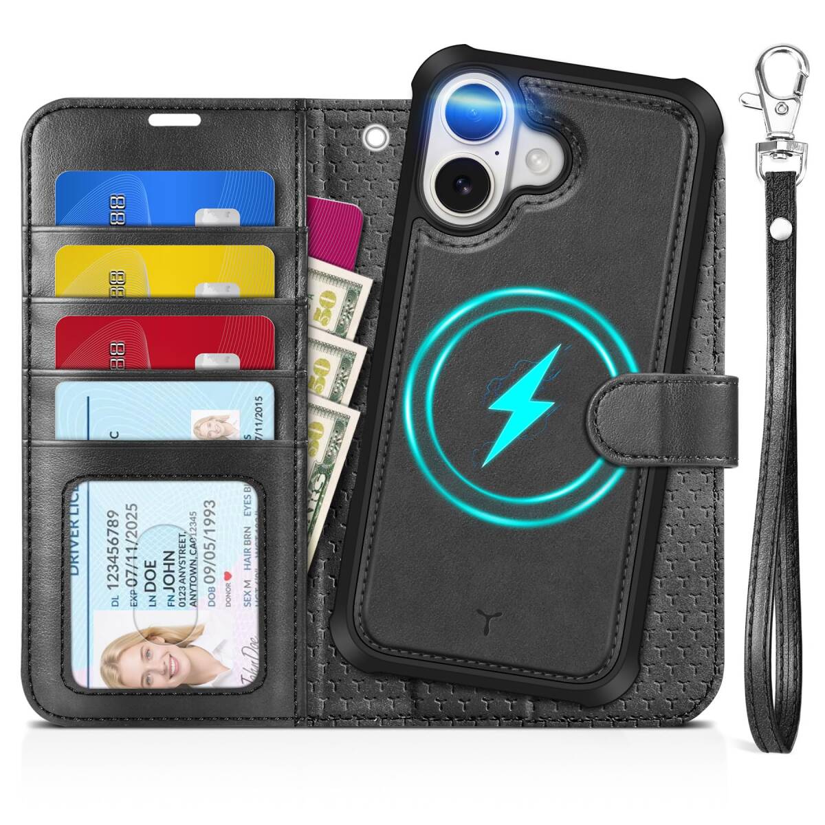 - 5G 2025年発売 あいふぉん17対応携帯ケース PU合皮 全面保護 衝撃吸収 横置きスタンド機能 ストラップホール 4つカード