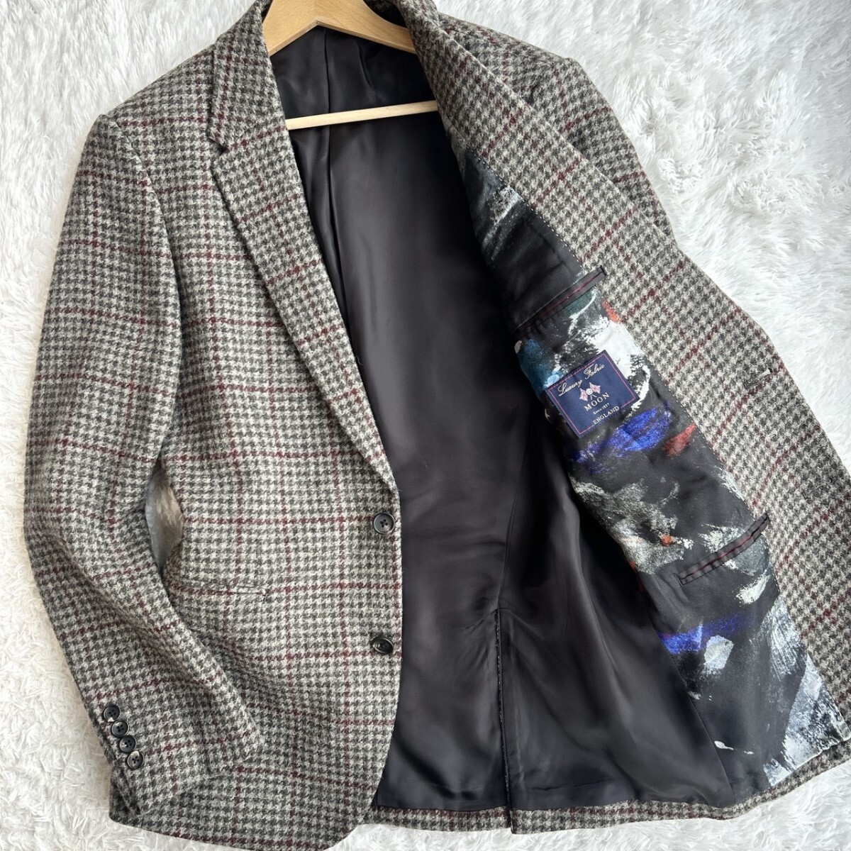 - 希少Lサイズ【英国MOON社製生地】PS Paul Smith ポールスミス ツイード テーラードジャケット メンズ 千鳥柄 総柄 アンコン ムーン 秋冬
