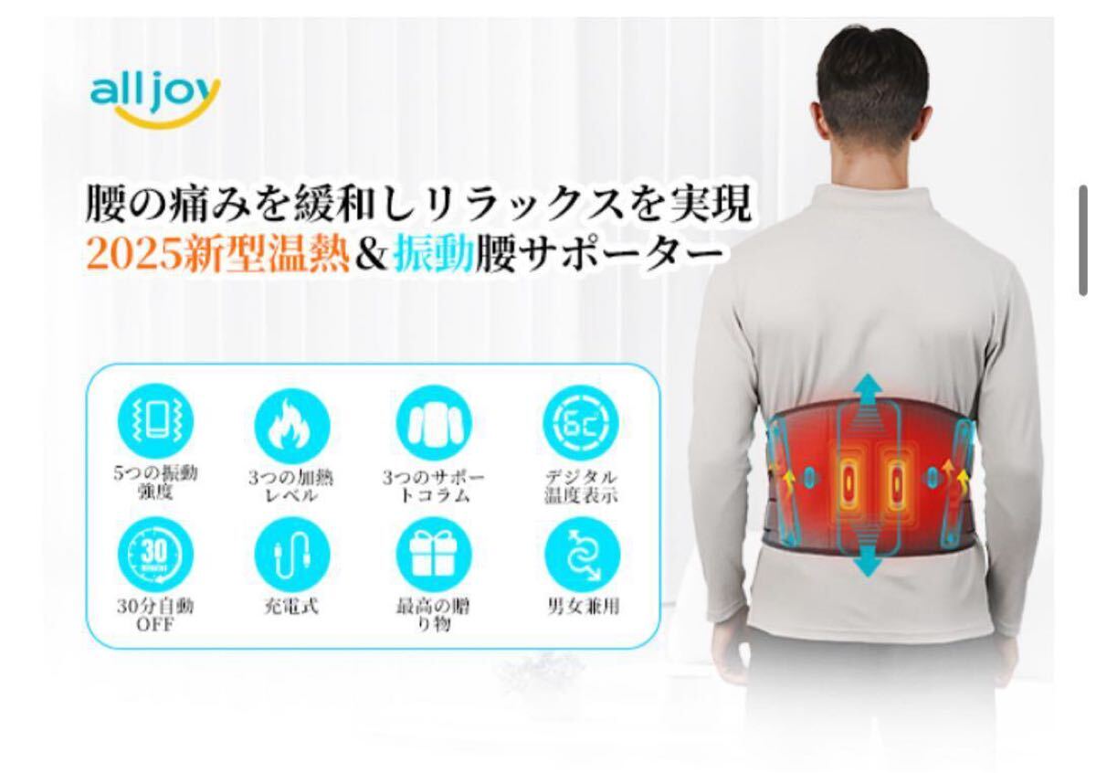 - ALLJOY 腰痛ベルト 腰 温め 3段階温熱調整 腰サポーター 5段階振動 腰 温める 温感