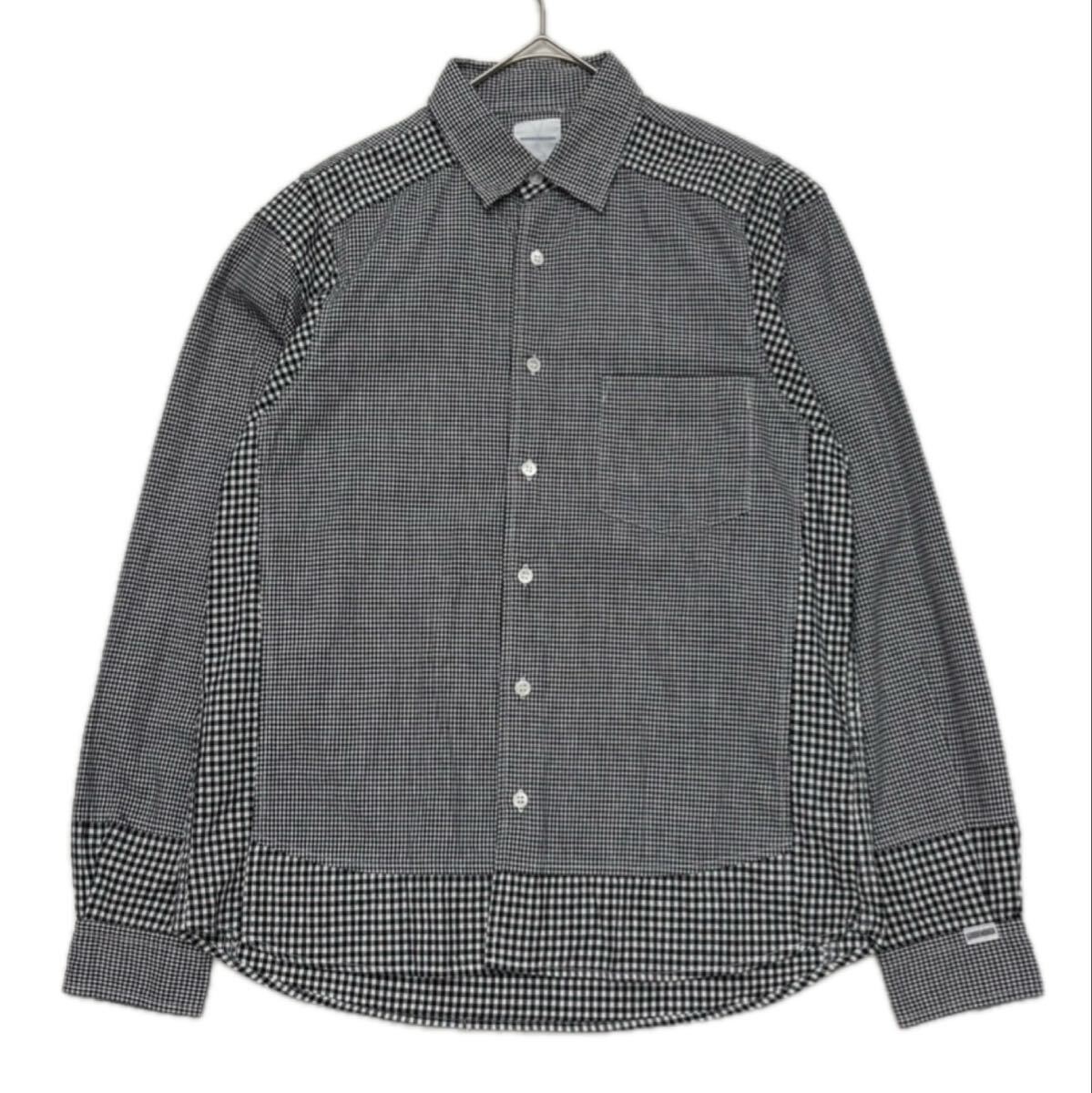 - 【 GOODENOUGH 】 美品 ピースアウト ギンガム チェック 柄 切替 シャツ S 白 黒 ホワイト ブラック 長袖 グッドイナフ