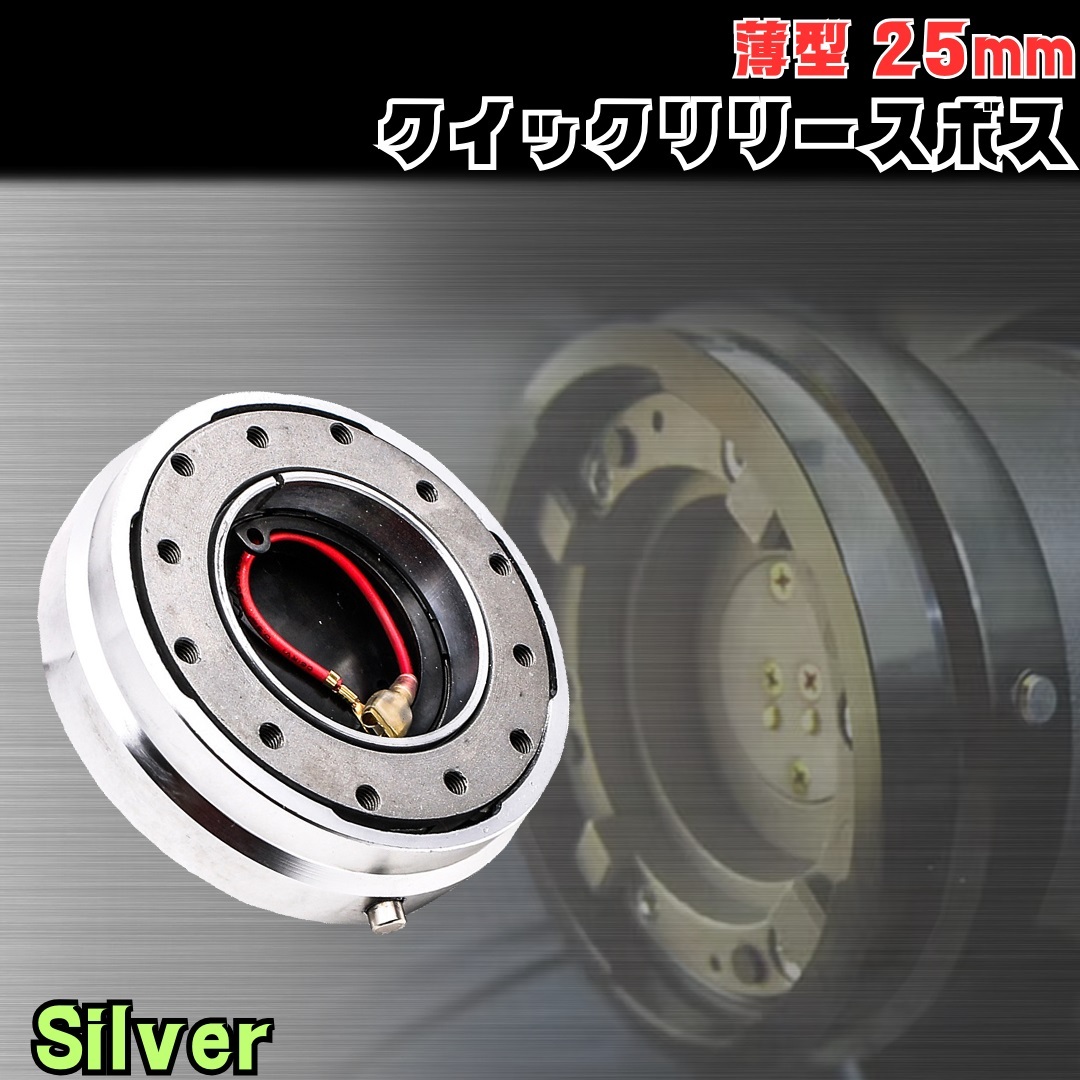 > 【薄型 25mm】クイック リリース ボス / シルバー / MOMO スパルコ ナルディ OMP 等対応 / ステアリング ハンドル スペーサー 着脱式