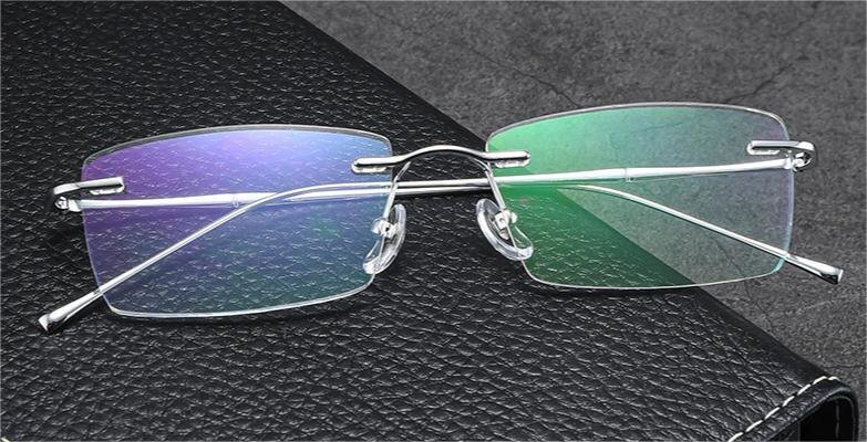 > 【新品】超軽量メガネ! 金属 チタン 眼鏡フレーム ふち無し レンズ交換可能 ファッション小物 男女兼用 シルバーydyj110