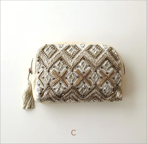 - ポーチ 小物入れ かわいい デザイン タッセル 布張り おしゃれ ペンケース ビーズ刺繍ポーチ 【Cタイプ】 送料無料(一部地域除く) kan6670c