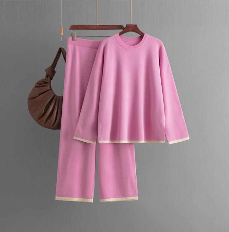 - 346 パンツスーツladiesレディース ◇ ニット素材 上質 ◇ 秋冬 上下セット 暖かい pink