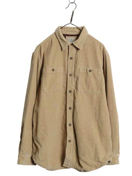 > 00s エルエルビーン 細畝 コーデュロイ 長袖 シャツ メンズ M オールド アウトドア チェック フランネル ライナー ポケット付き ジャケット