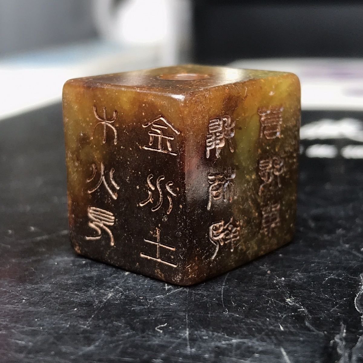 - 玉 玉彫刻銘文小方玉茶色 玉桶珠 古珠 珠 盤珠 腰珠 散珠 diy仏珠 菩提アクセサリー 裝身具 護符開運 dpp394