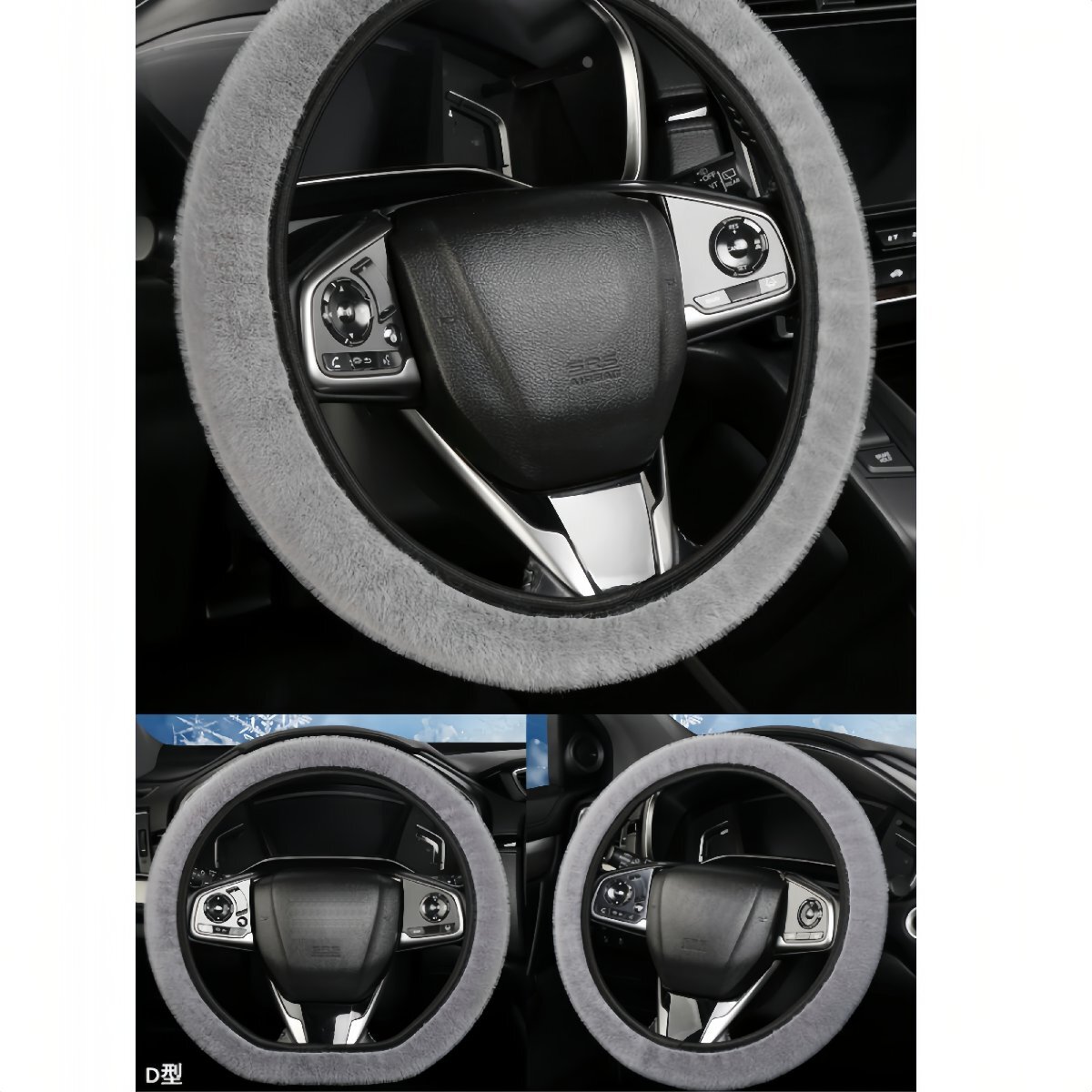 - ハンドルカバー ステアリングカバー キルティング 防寒 冬 ふわふわ 暖かい 37~38cm カーボン調 車用 ステッチ 耐摩耗 滑り止め O型 D型