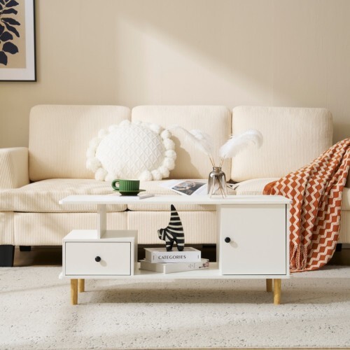 - センターテーブル ローテーブル テレビ台 引出し付き ラック付き 収納付き 3色 大容量 多機能 リビングテーブル おしゃれ 北欧【ホワイト】