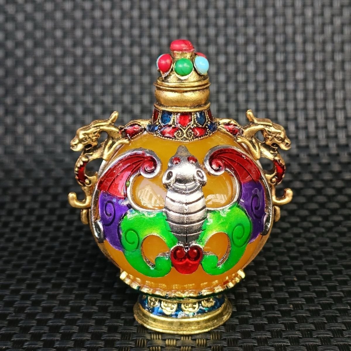 - 瑠璃ガラス製 彫刻 宝石 景泰藍鼻煙壺 夜光 銅鼻煙壺 チベット鼻煙壺 中国工芸品 中国美術 置物 収蔵 コレクション 縁起物 ZH1181