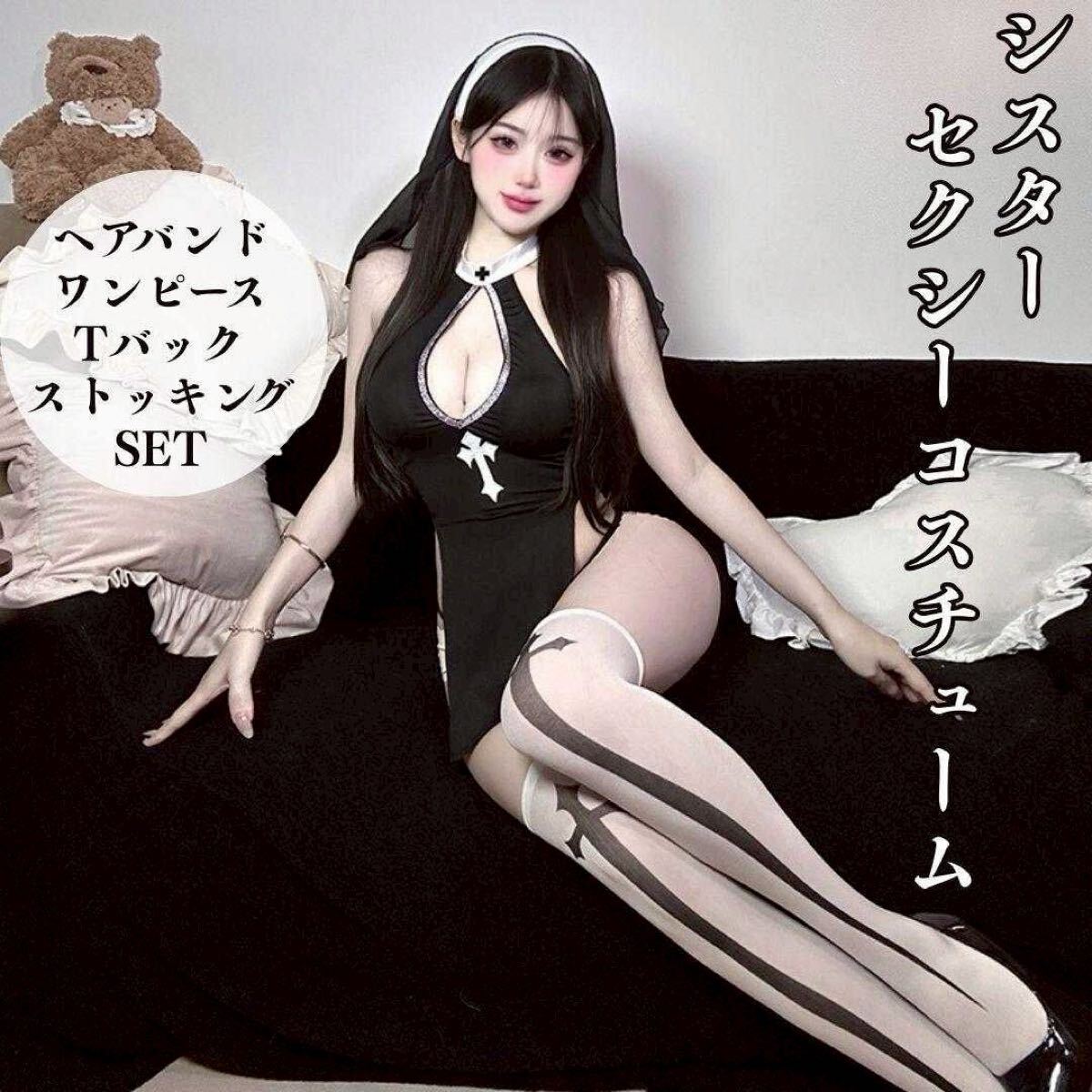- セクシー ノースリーブ シスター服 コスプレ 4点セット ハロウィン 衣装 コメントでお値引き!