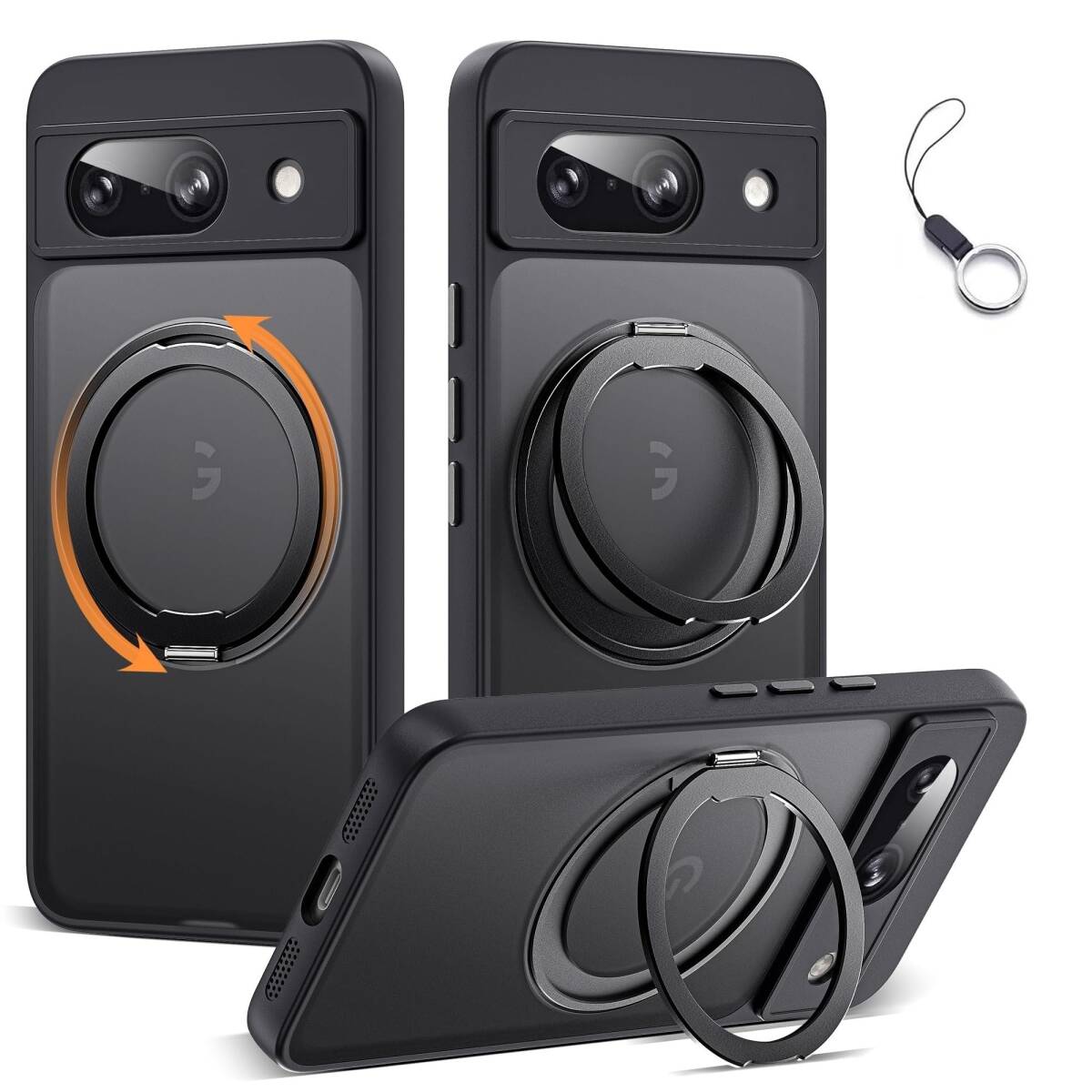 - マグネット搭載 擦り傷防止 ストラップホール付き 半透明 薄型 ワイヤレス充電 全面保護 純正 【横縦両立・角度自由調整】カバー