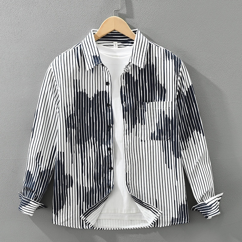 - 長袖シャツ シャツ トップス 新品★メンズ 開襟シャツ カジュアルシャツ 春服秋服 ストライプ コットンシャツ【M7815】白 L